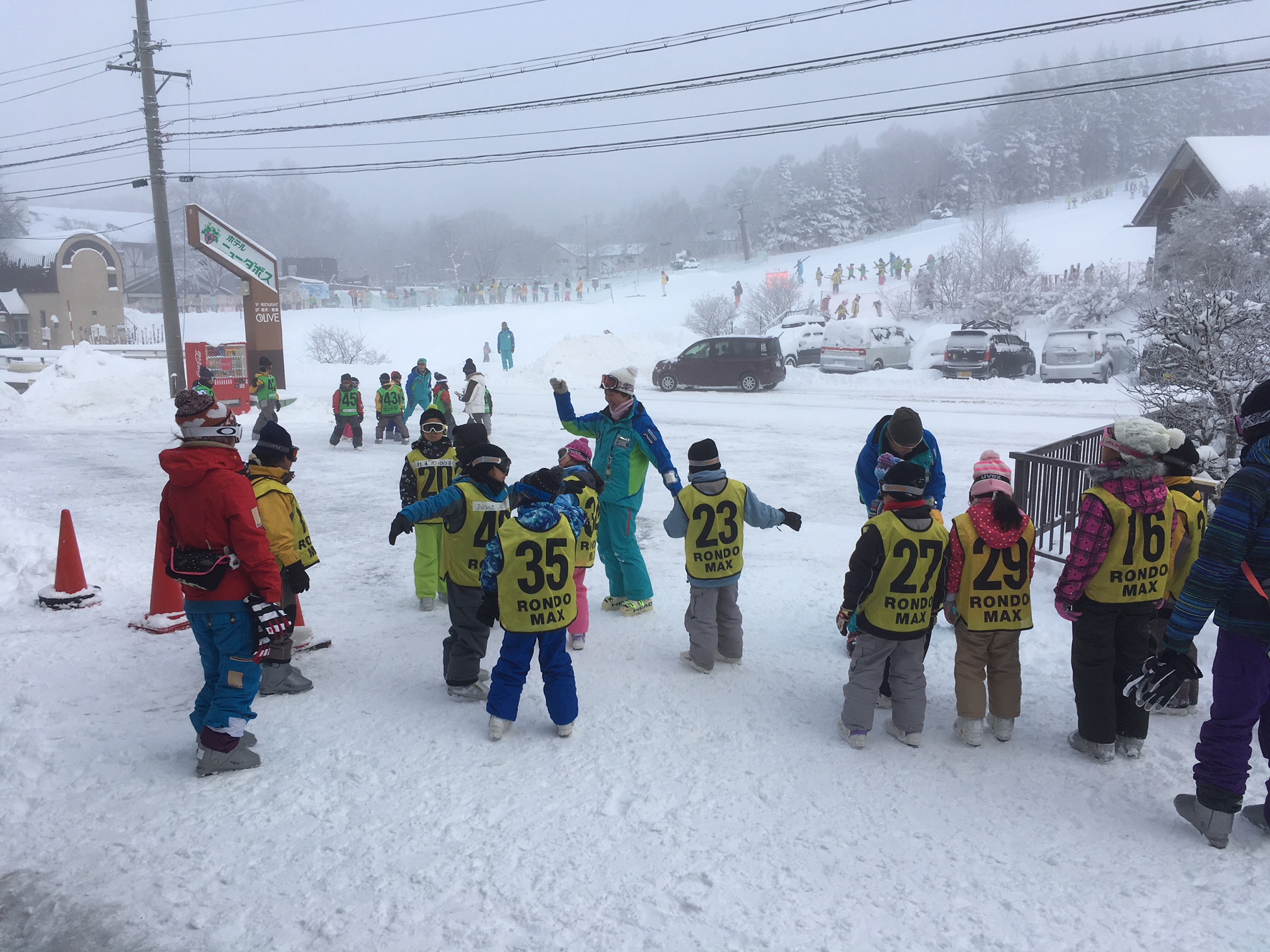 今は最後のスキーレッスンを開始しています。