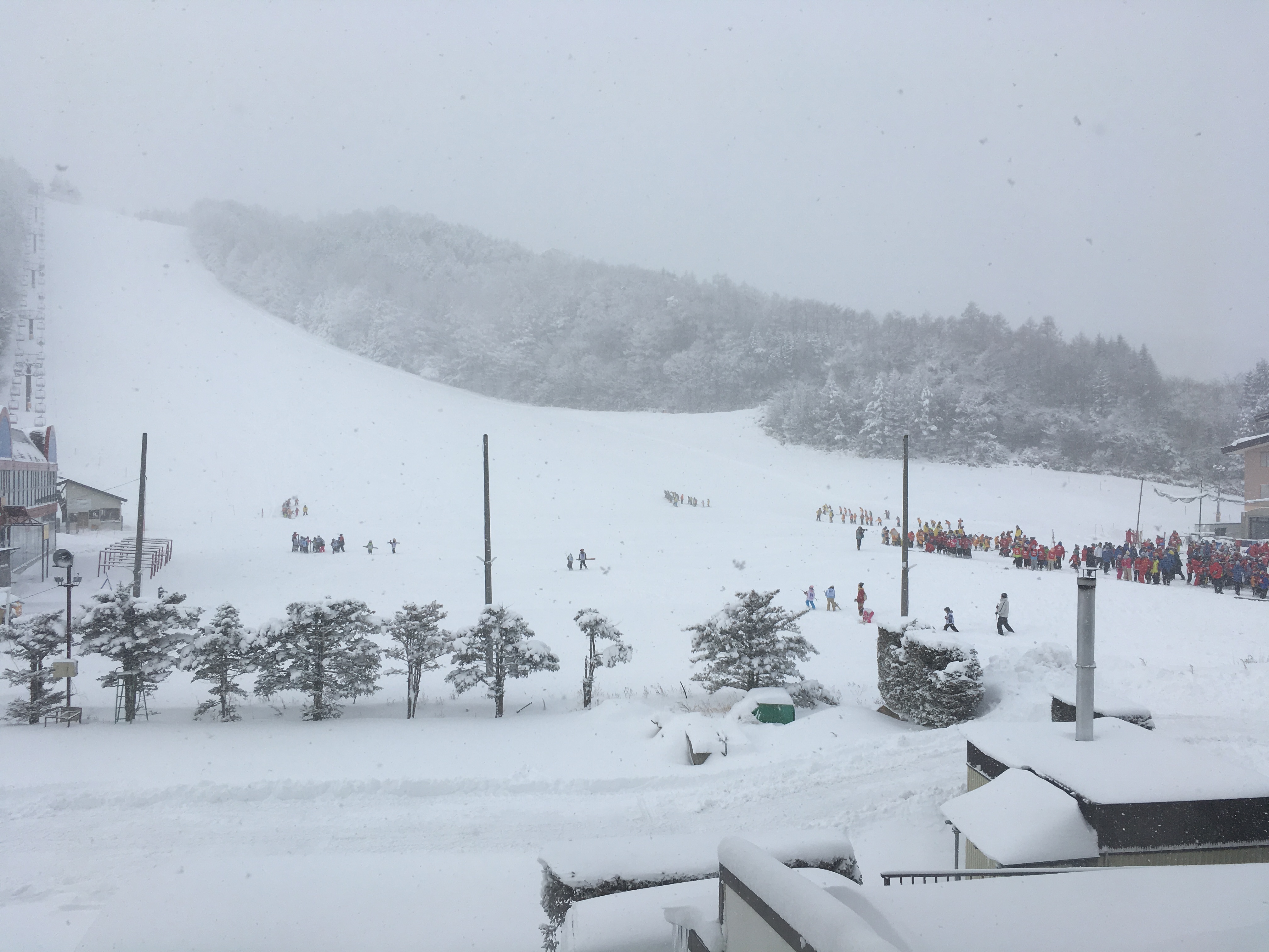 昨日の夕方から雪が降り続いて、ゲレンデはパウダースノーに覆われているので、とても滑りやすい環境になっています。