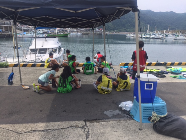 はじめにシュノーケリングしたチームが、お昼の焼きそば食べてます!