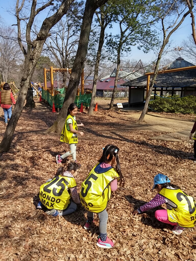 今度は落ち葉で遊ぶ女子たち…