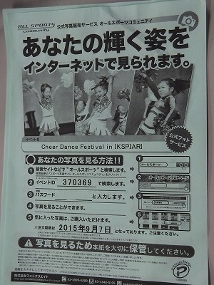 みなさんこんにちは先日行われた「Cheer Dancefestival in IKSPIARI」 参加したお友達に写真販売のお知らせをお渡し致しました。イベント後1週間位で閲覧可能とのことですので、ぜひ見てみてくださいね。なくしてしまったという方はパスワードがないと見れませんので、フロントにお手紙を取りにきてください