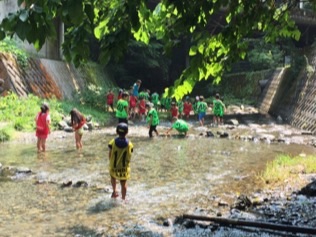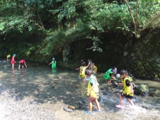 カレーも食べ終わり、ただいま川遊び中!