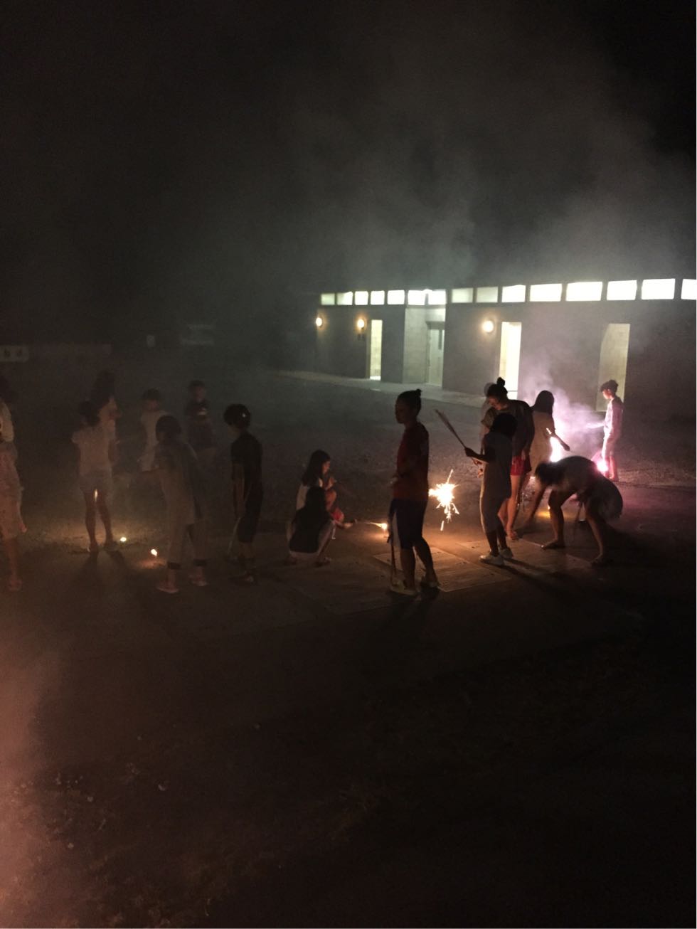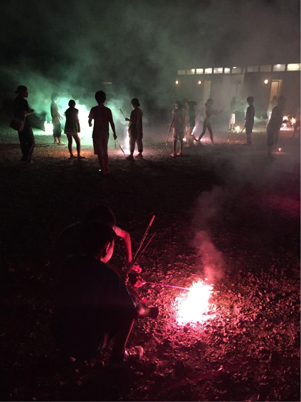 夕食を食べ終えて、今夜のレクリエーションは宿舎近くの広場で花火をしました。一人ひとり手持ち花火を楽しんだ後に、ドラゴン花火の20連発も楽しみました!