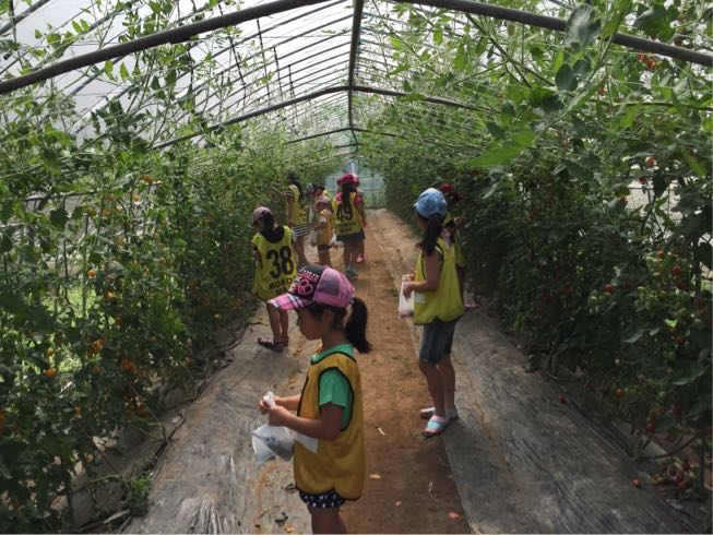 野菜収穫です!トマトはその場で採りたてを頂きました♪( ´▽`)