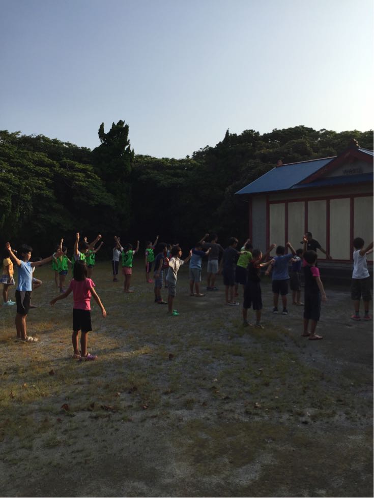 子供達は起床時間にはしっかり目覚めて、近くの広場で元気に体操をしました。