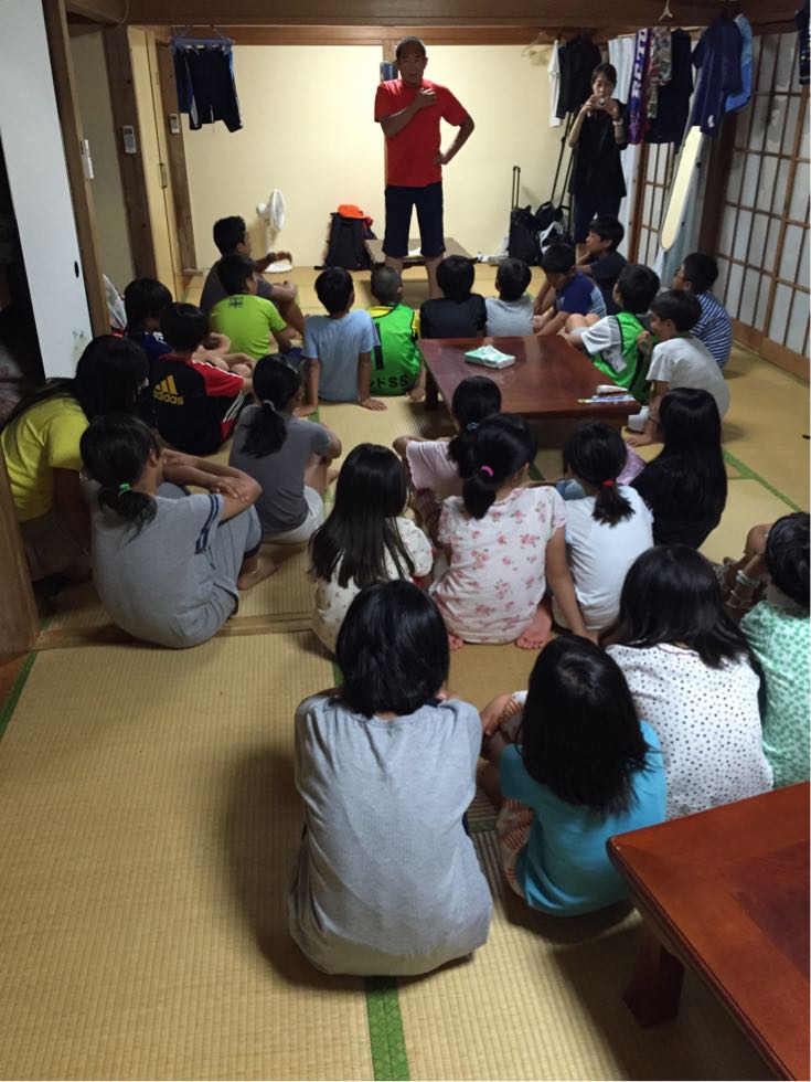 もちろん引率コーチ達もしました。あるコーチの意外な話も飛び出したり、13年前の式根島キャンプや海の生き物の話を聞いて、みんな得した気分になりました。