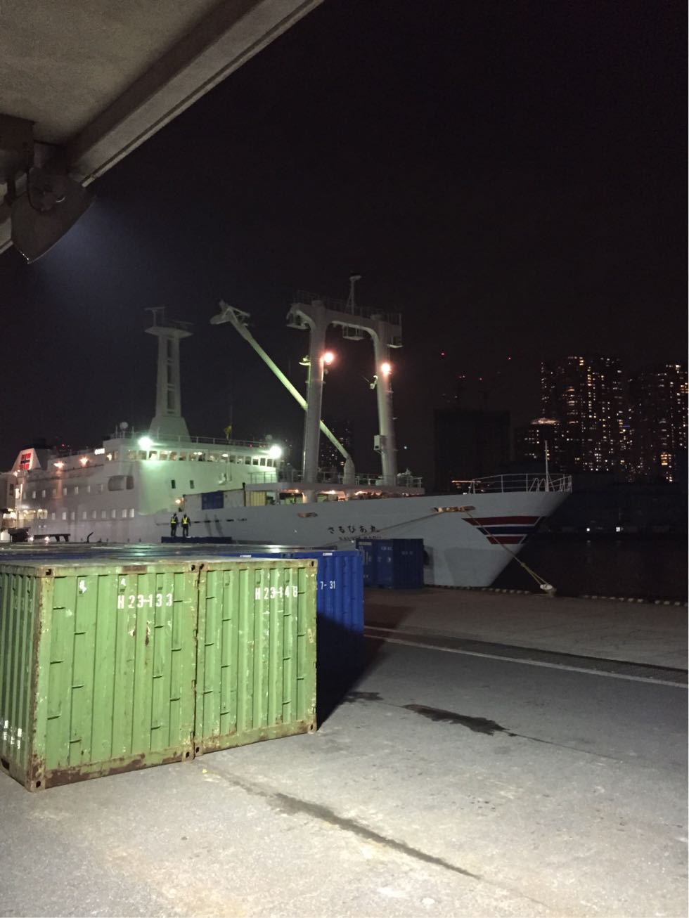 今はこれから乗る「さるびあ丸」を眺めながら乗船待ちしています。