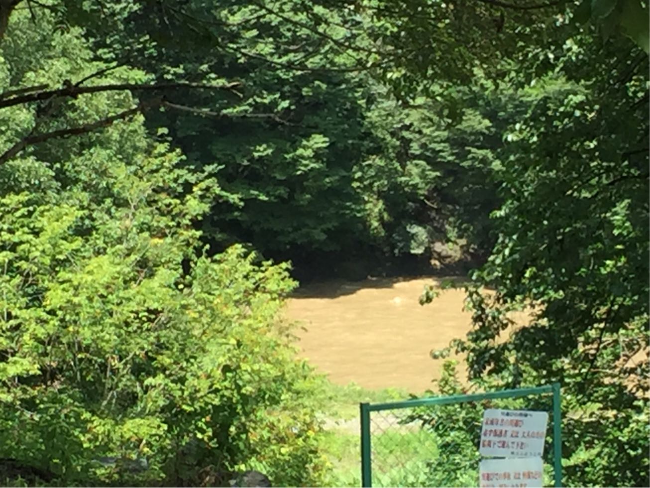 雨の影響で川はこんな感じに…