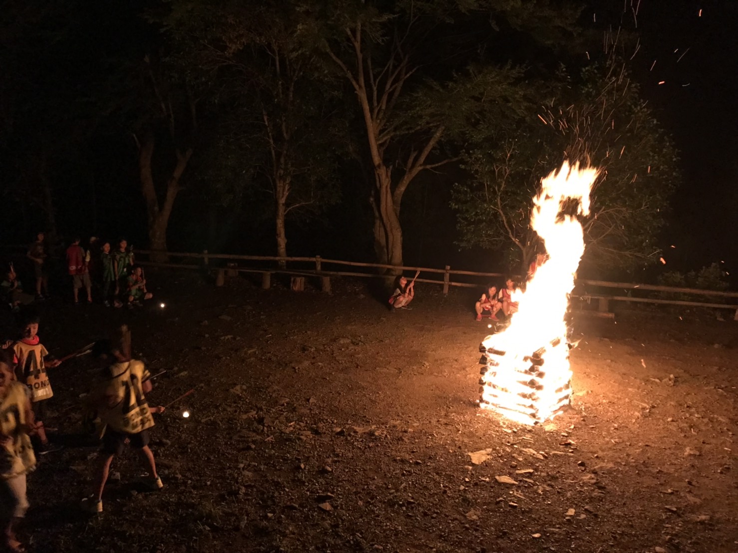 只今、キャンプファイヤーをしています!